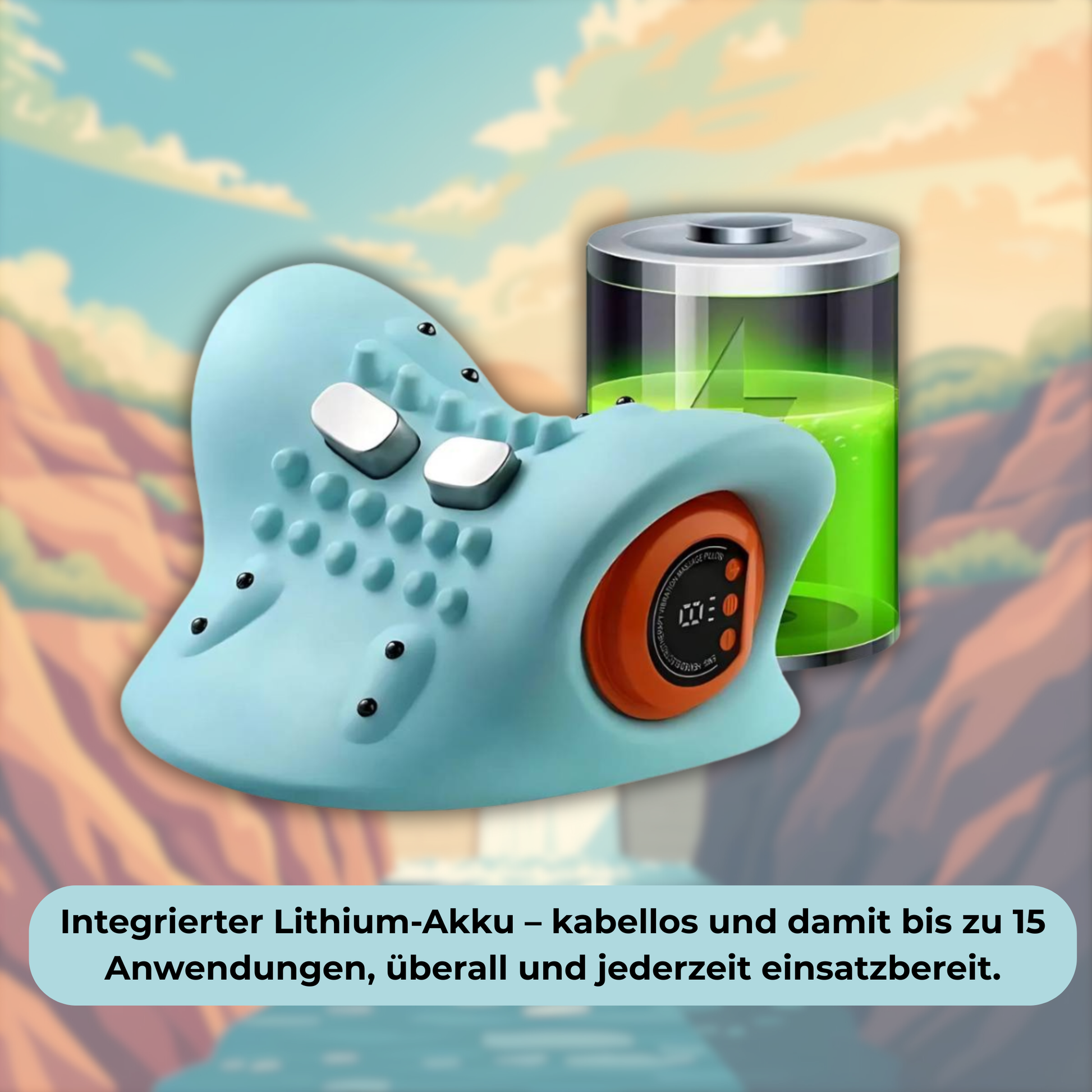 Der NeckBuddy verwendet die Zervixtraktion, um die gesunde Ausrichtung Ihrer Halswirbelsäule auf natürliche Weise wiederherzustellen, und EMS, um die Muskeln zu stärken, die die optimale Haltung von Nacken und Rücken unterstützen, wodurch der Druckaufbau in den Nackenmuskeln und im Kopf entlastet wird.